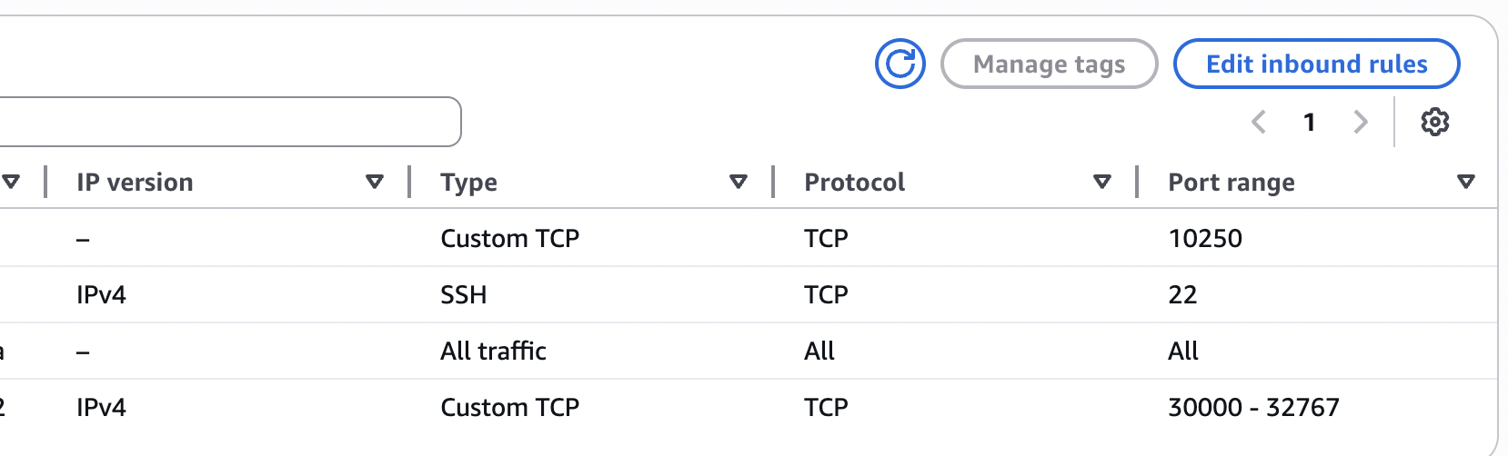 | All traffic | All | Same security group (self) | Node-to-node (e.g. pod networking) |
